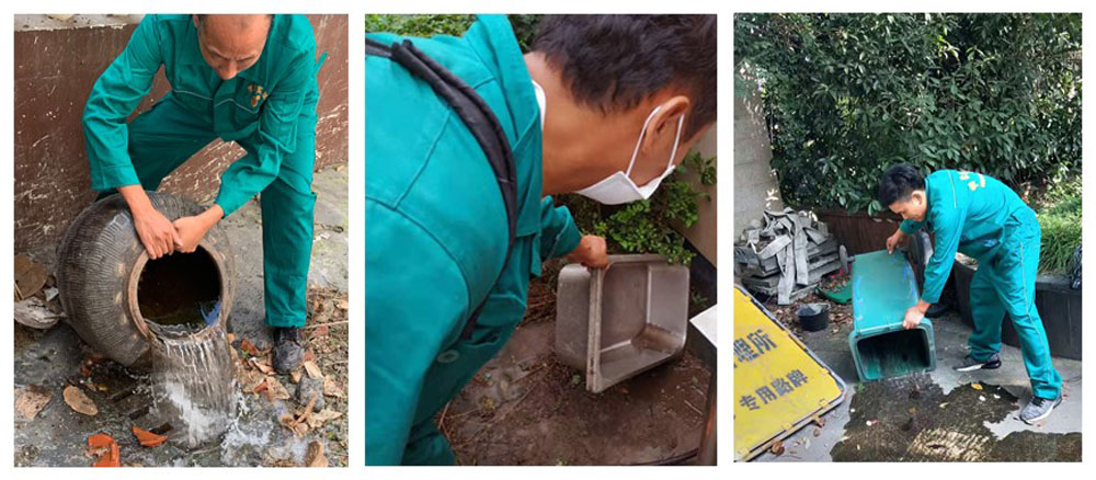 針對蚊子的習性以及繁殖特點,對各種有積水的花盆,水桶,水槽等進行傾倒處理,阻斷蚊子以及幼蟲的繁殖生存之地。