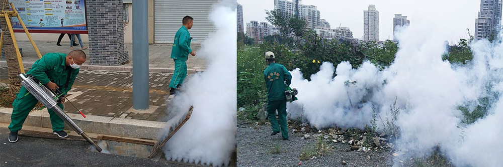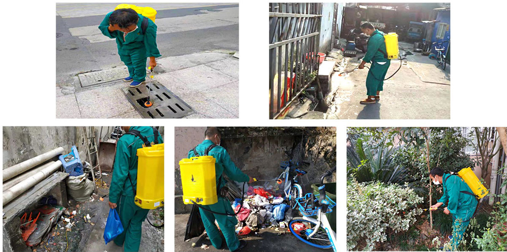 小區(qū)域采用背負式蓄電池噴霧器進行點對點的精確消殺,不漏掉任何蚊蟲滋生區(qū)域,全范圍,全覆蓋。